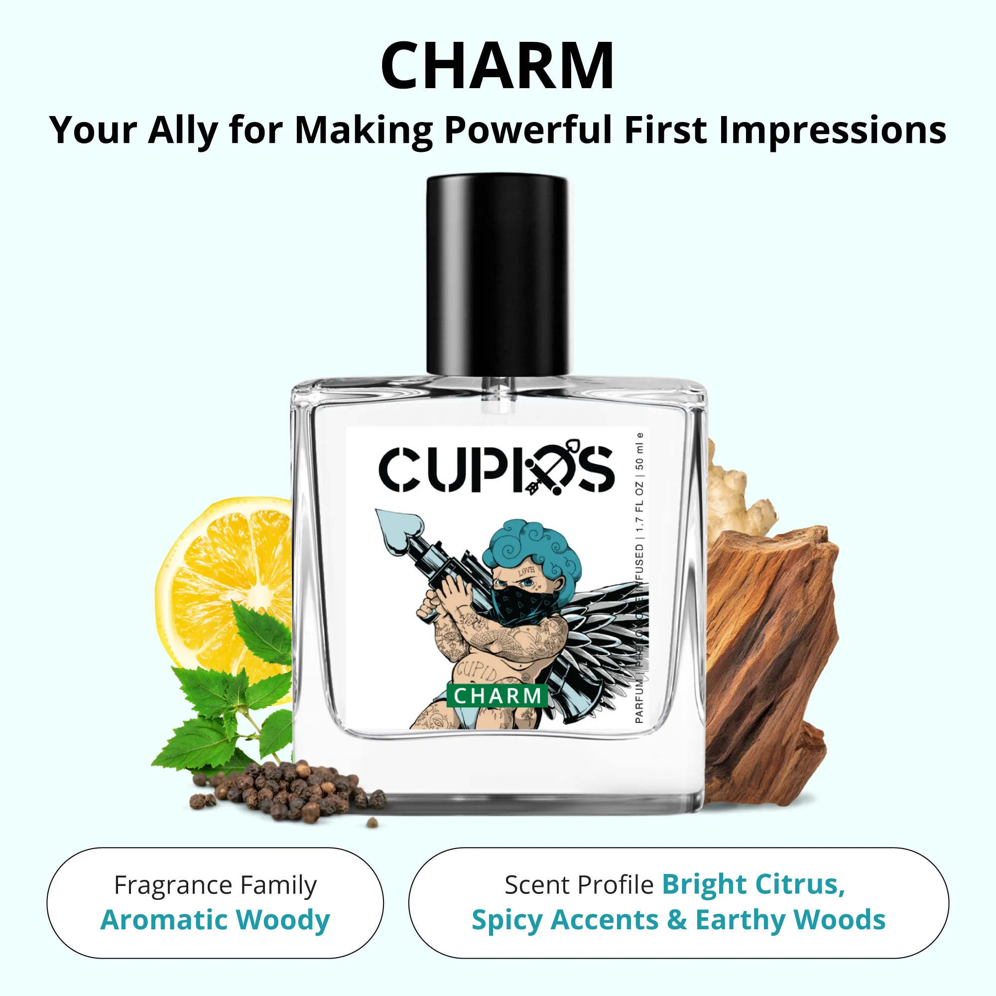 Charm is your ultimate first-impression cologne. Infused with Androstenone, it amplifies masculinity, confidence, and dominance. With its bold, assertive scent, Charm sets the tone for impactful connections.